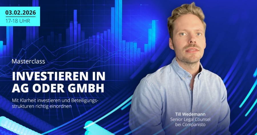 In dieser Masterclass erhalten Sie einen verständlichen Überblick über die Unterschiede zwischen AG und GmbH aus Investorensicht. Sie lernen, wie sich die jeweilige Rechtsform auf den Investitionsprozess, Ihre Beteiligungsrechte und mögliche Exits auswirkt und worauf es bei Startup Investments über das Companisto Netzwerk wirklich ankommt. Ziel ist es, rechtliche Zusammenhänge einzuordnen und mehr Sicherheit für zukünftige Investmententscheidungen zu gewinnen.
